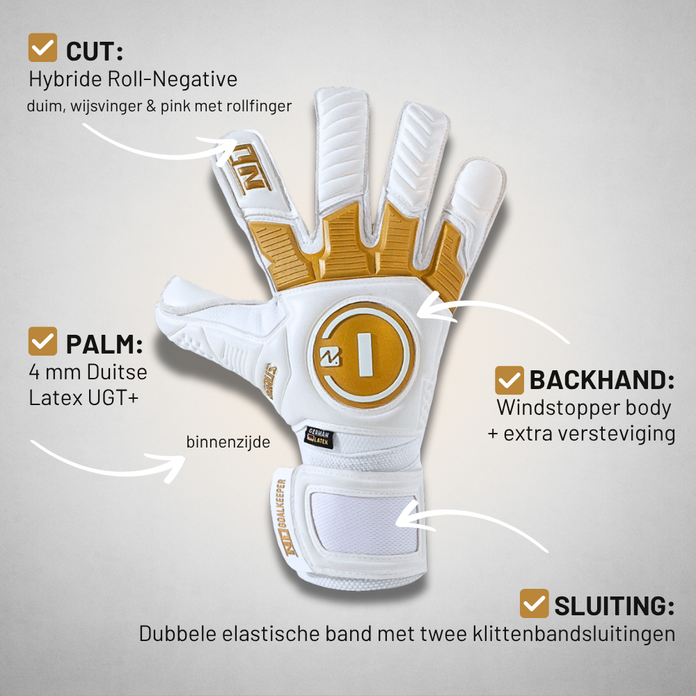 The highest evolution of protection in your hands! Goalkeeper gloves with hybrid Roll-Negative cut and a palm made with our 100% natural German latex Contact Grip.
